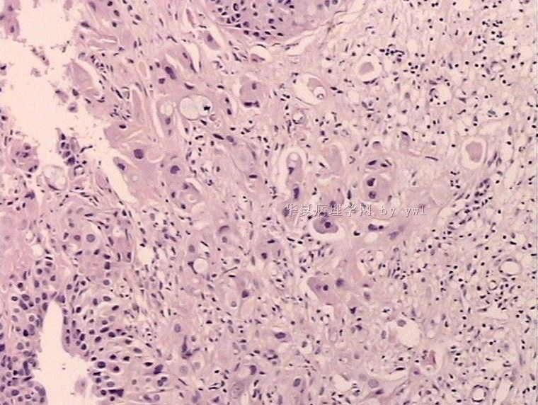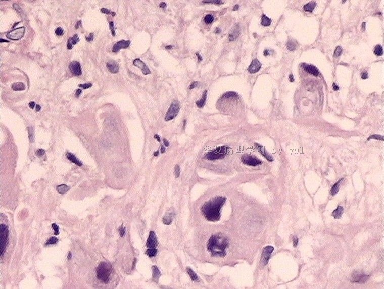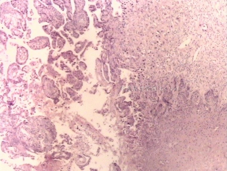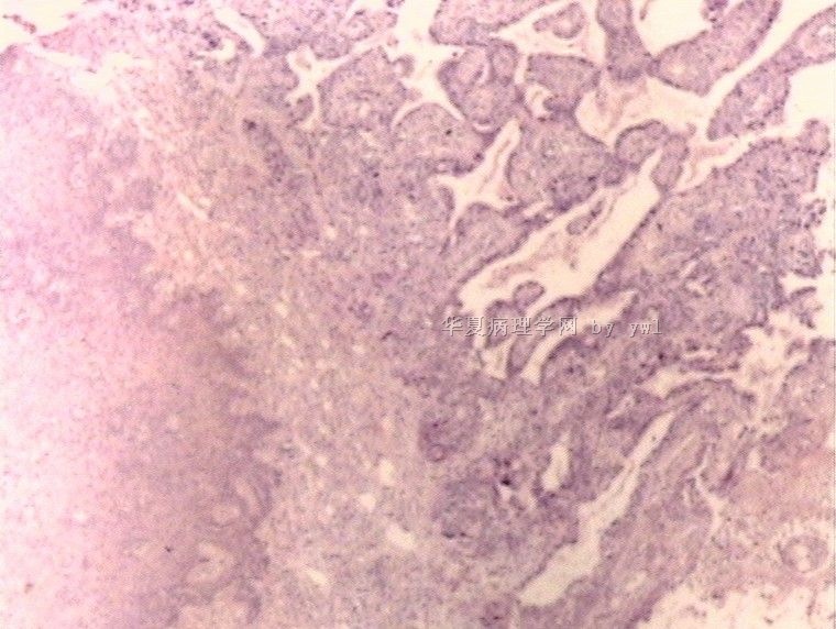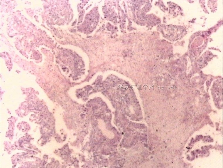 考虑:原位腺癌,小灶性区域有鳞状上皮向间质内浸润,考虑有鳞状细胞癌结构。