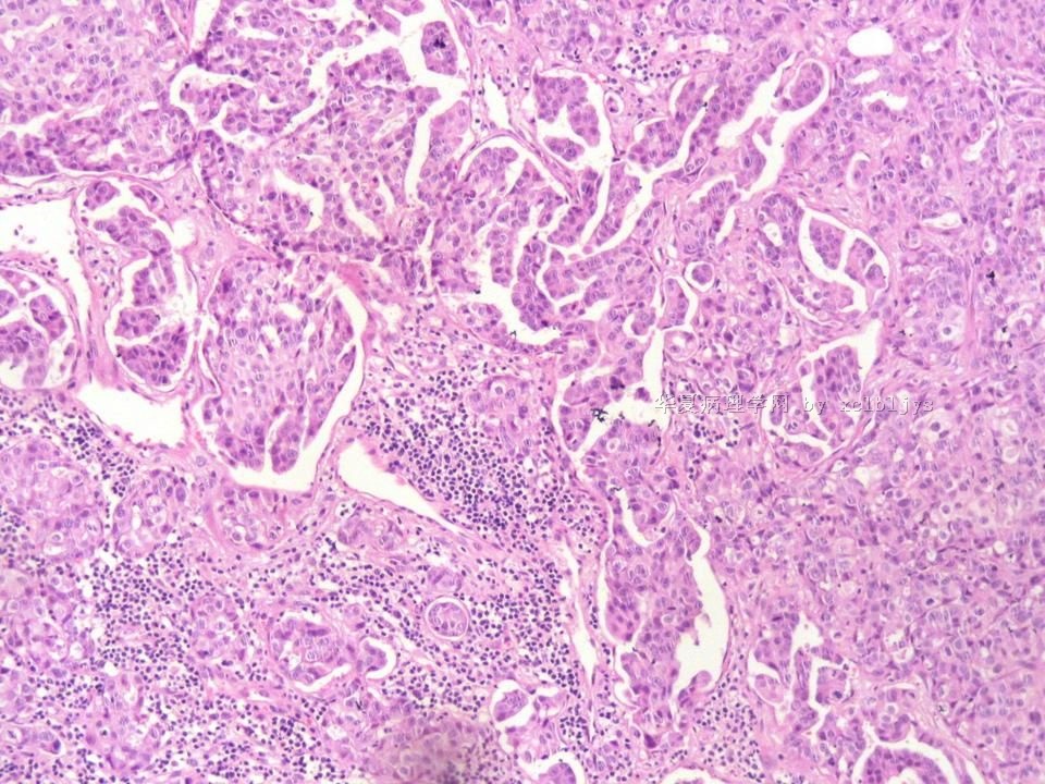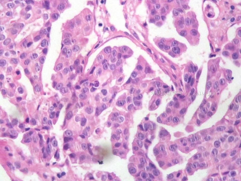 免疫组化结果:TTF-1(+),CK7(+),CK20(-),TG(-)。临床近一步检查,肺未见肿块,左甲状腺发现肿块,目前仍未处理。