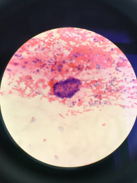 是腺细胞,但核的结构有些模糊,不太容易判读。