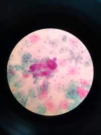 看多不多,如果散在的蓝色棉团样的是放线菌,这个比较红,如果就这一团就未必是了