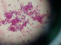 考虑增生的间细胞,可以做细胞块,免疫细胞化学染色明确一下。