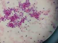 细胞量大,有腺样结构,可疑的腺癌细胞