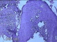灰白粉红色息肉样组织1.7x1.3x0.7cm一块,表面糜烂,切面灰白粉红色,质软。