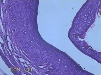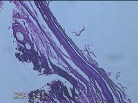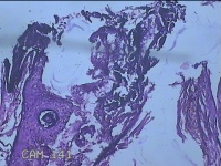 灰白粉红色肿物0.8x0.3x0.2cm两个,表面光滑。