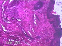 灰白粉红色带皮肤样肿物1.8x0.5x0.2cm一个,表面糜烂。